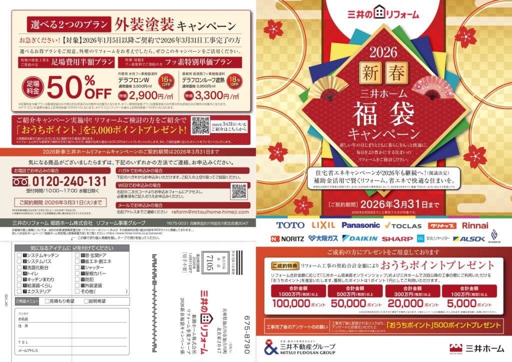 【お問い合わせ】 三井のリフォーム姫路店 ※水曜日は定休日となっております。 フリーダイヤル:0120-24-0131